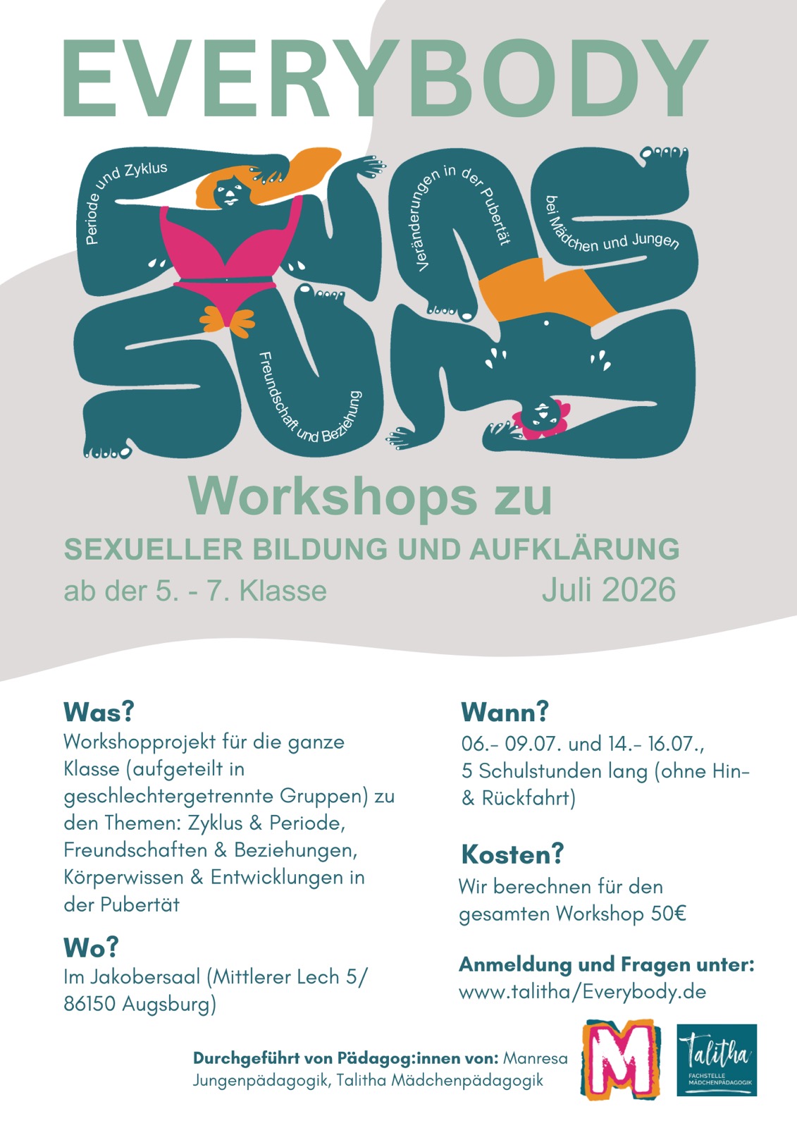 „Every Body“ ist ein interaktives Präventions- und Bildungsprojekt, das Jugendliche in einer wichtigen Entwicklungsphase begleitet. Es verbindet altersgerechtes Körperwissen, emotionale Bildung und geschlechterreflektierte Sexualpädagogik. Ziel ist es, Mythen abzubauen, einen respektvollen Umgang miteinander zu fördern und die Jugendlichen in ihrer Selbstwahrnehmung und Beziehungsfähigkeit zu stärken.